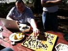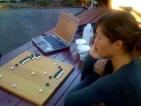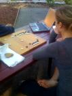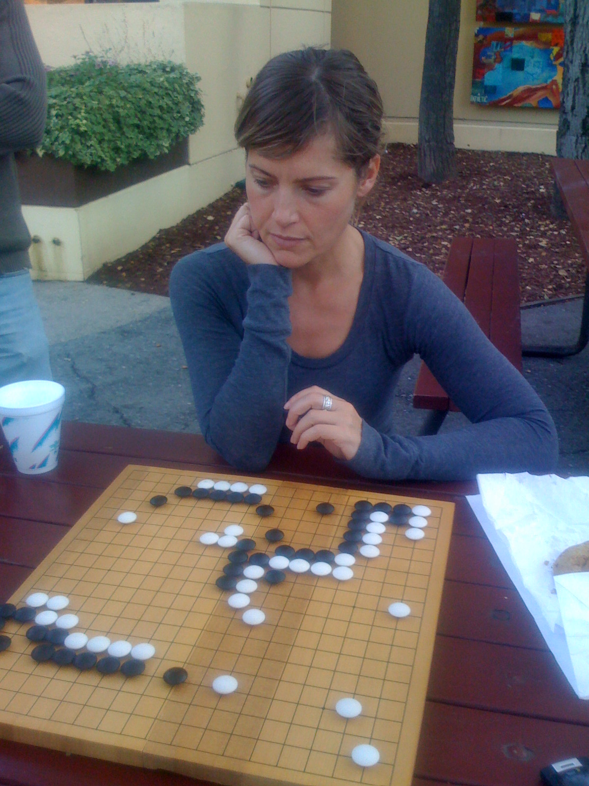 Jill (a yoga instructor -- notice seated position in first photo) was extremely nervous all day, but bravely stepped up to the plate anyway, playing black.