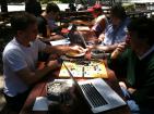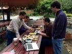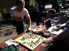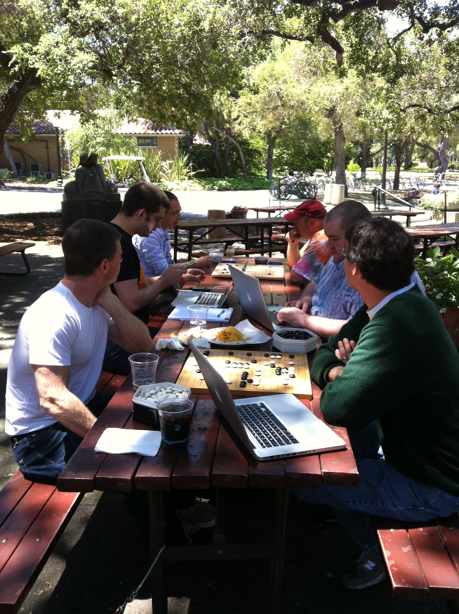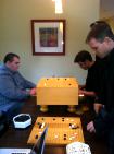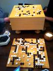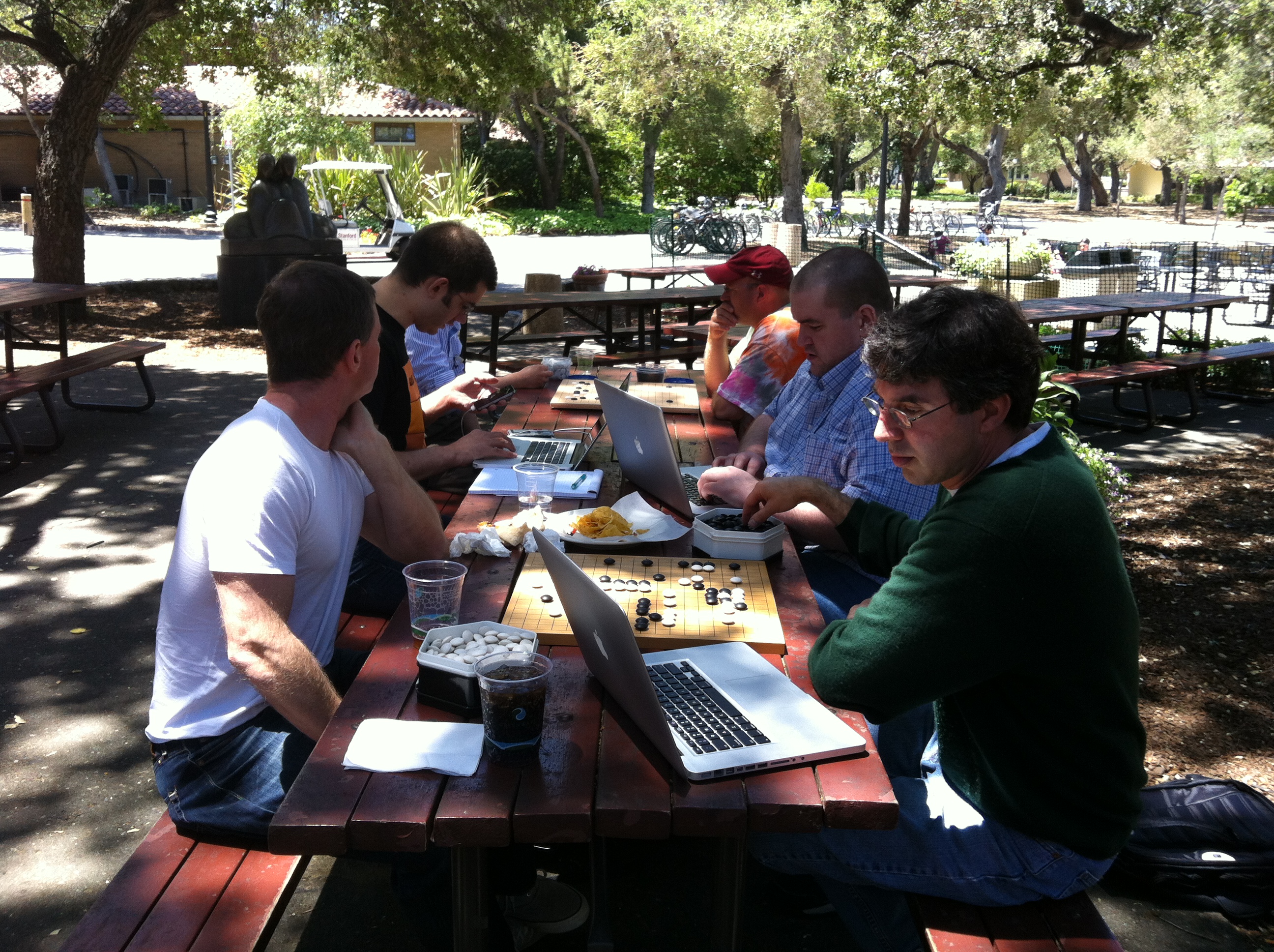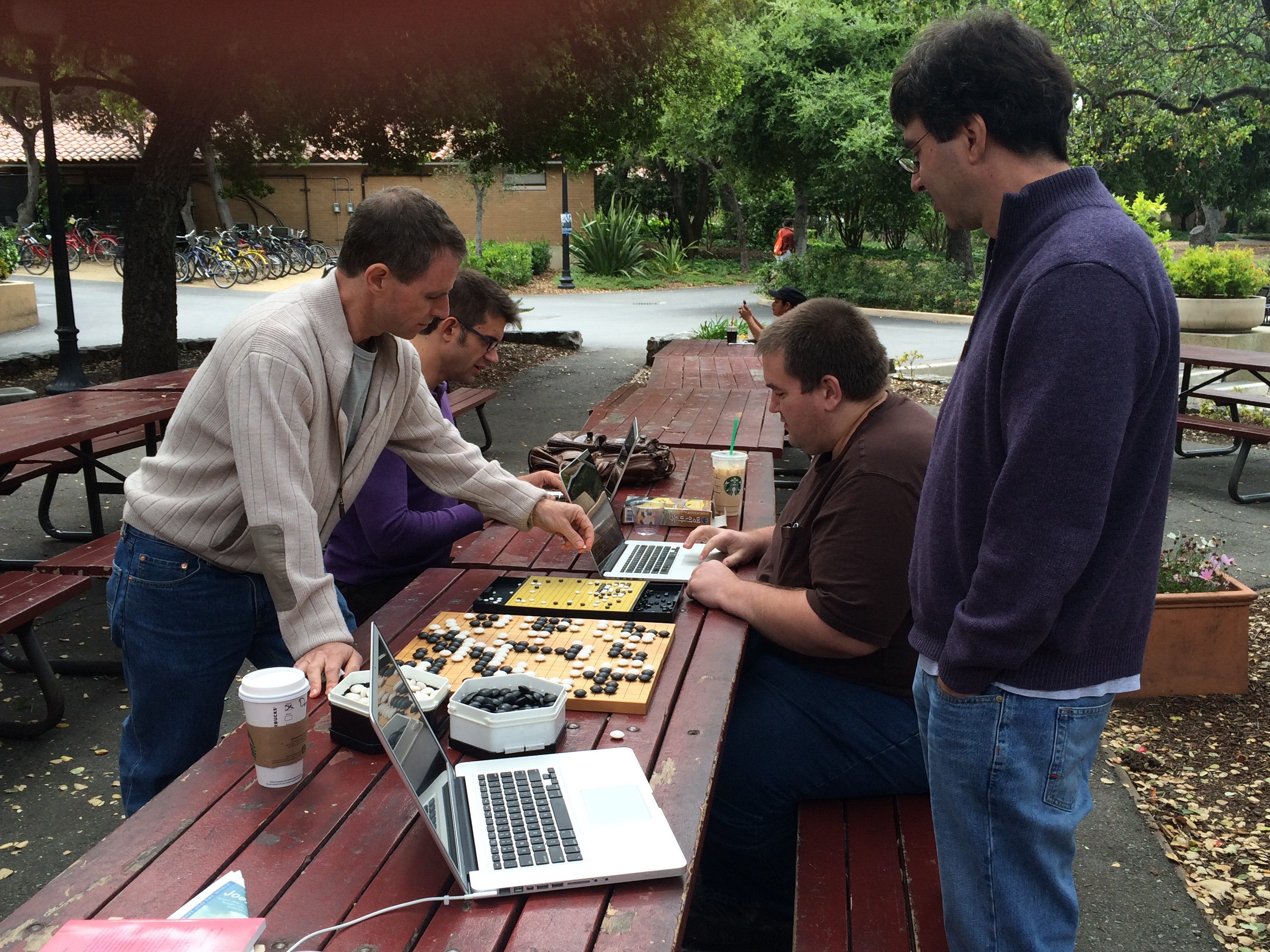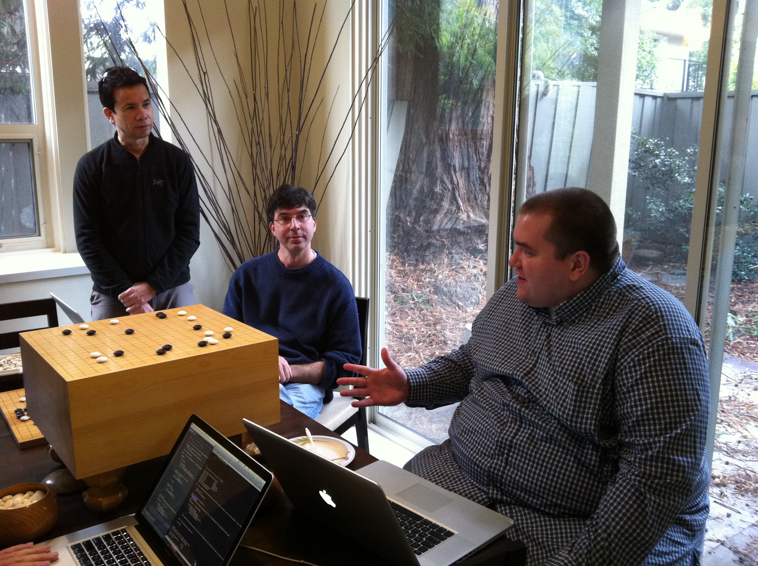 Joe had nothing, when the day started. He began programming, as the other two games started. Halfway through, he announced: "I downloaded a Go GUI. You can see the board, but it won't make a move." By the end of the match, Joe successfully implemented a random player, hooked up to the GUI.