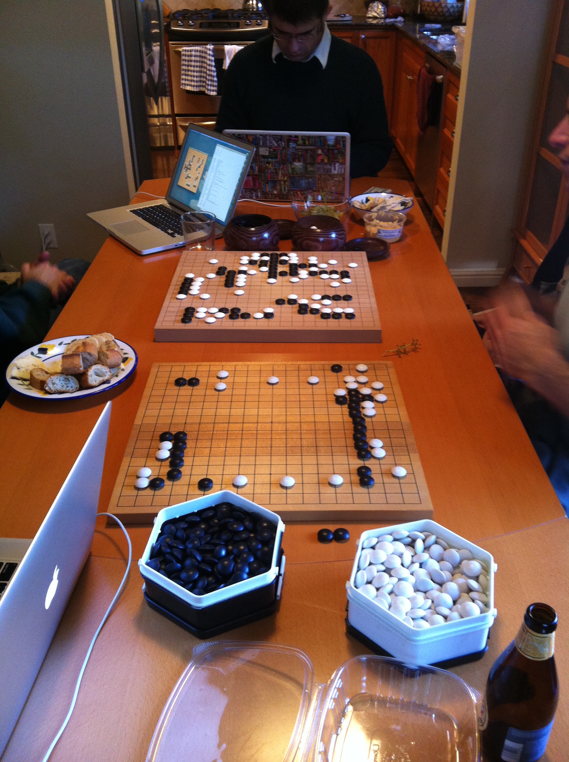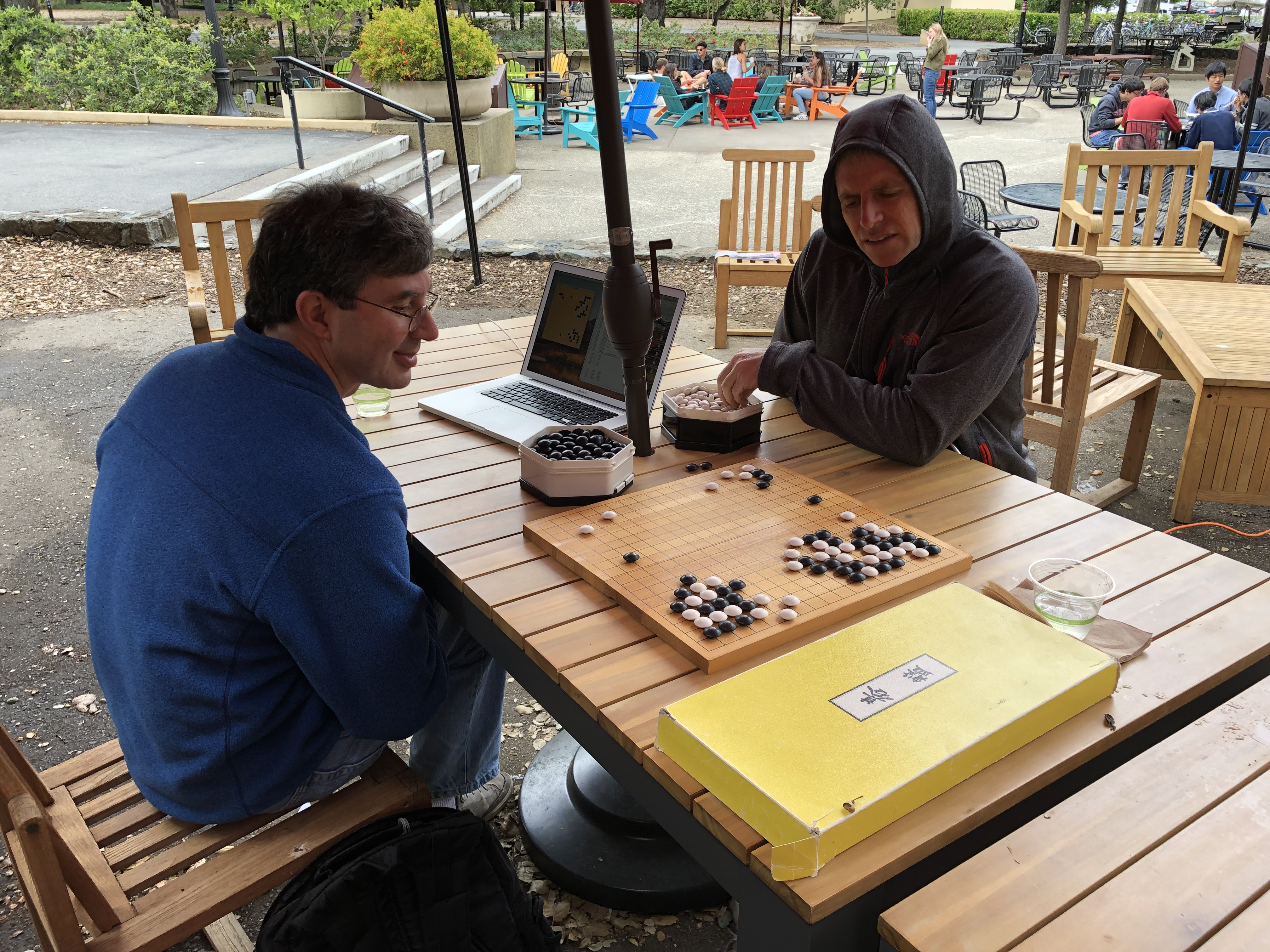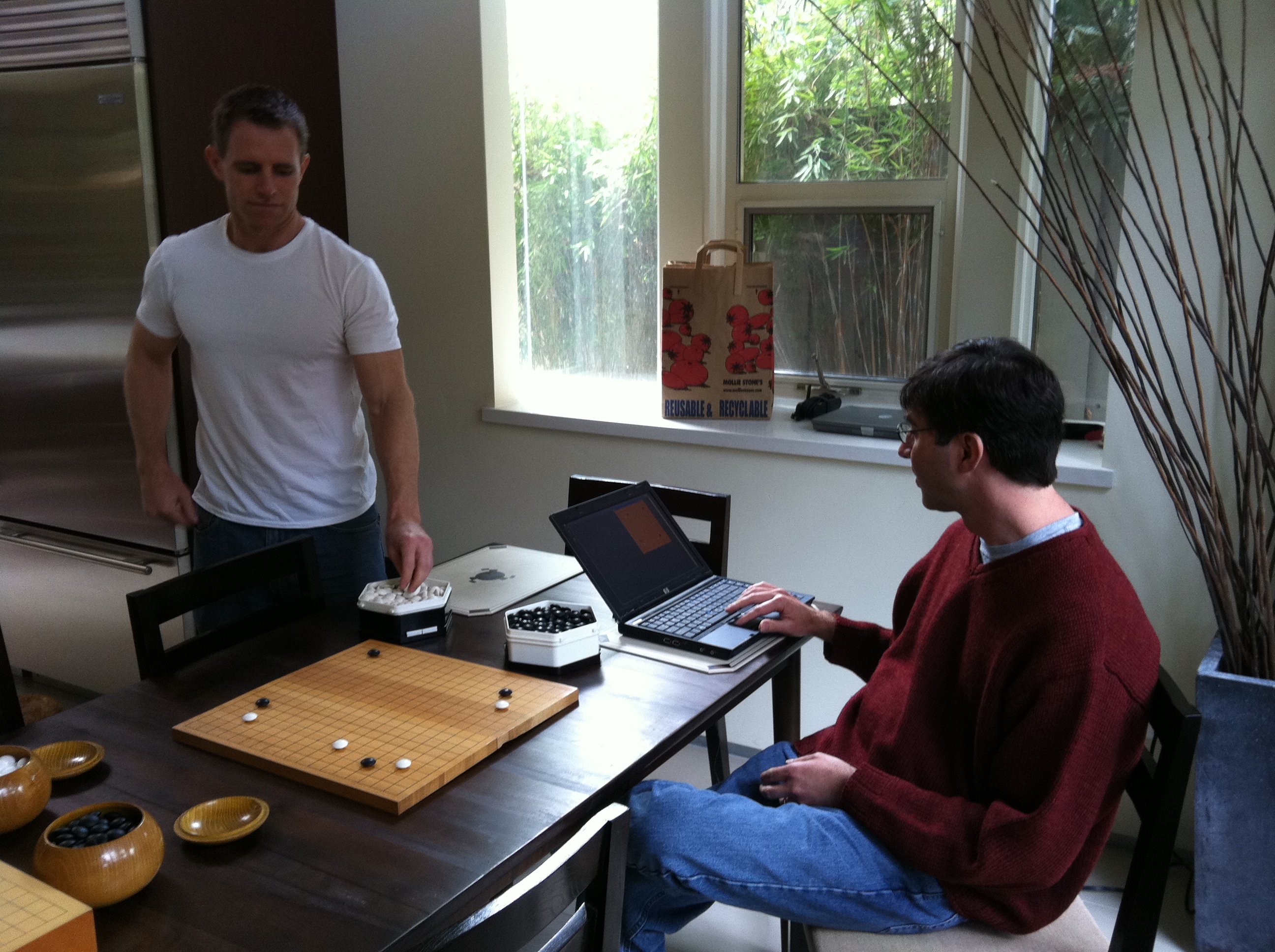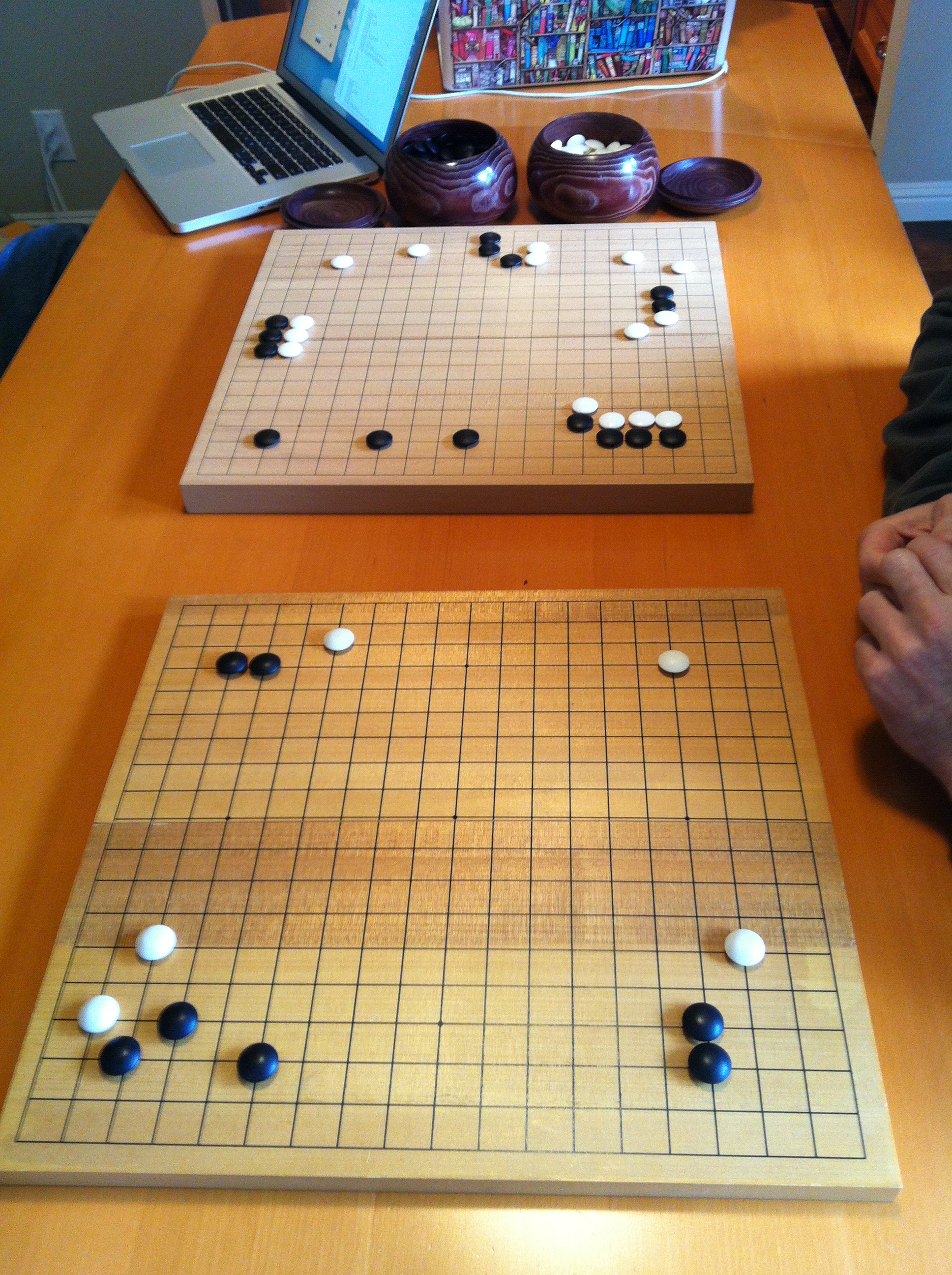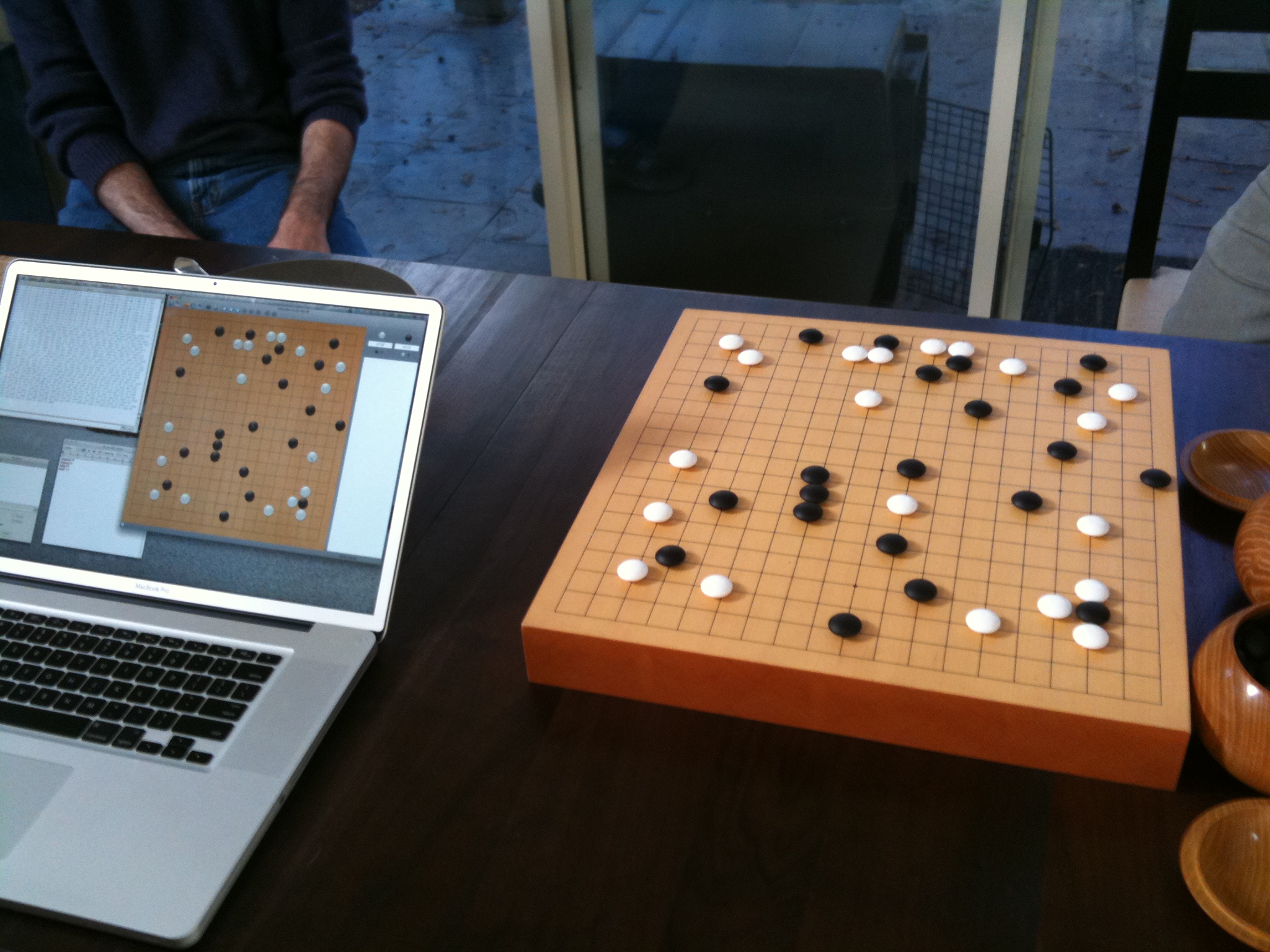 At the same time, Will challenged Scott to a human vs. human game. They've played many times together in the past years, and it's always been clear that Scott is much better. So, in these games, Will always starts with a handicap advantage of a handful of stones.
