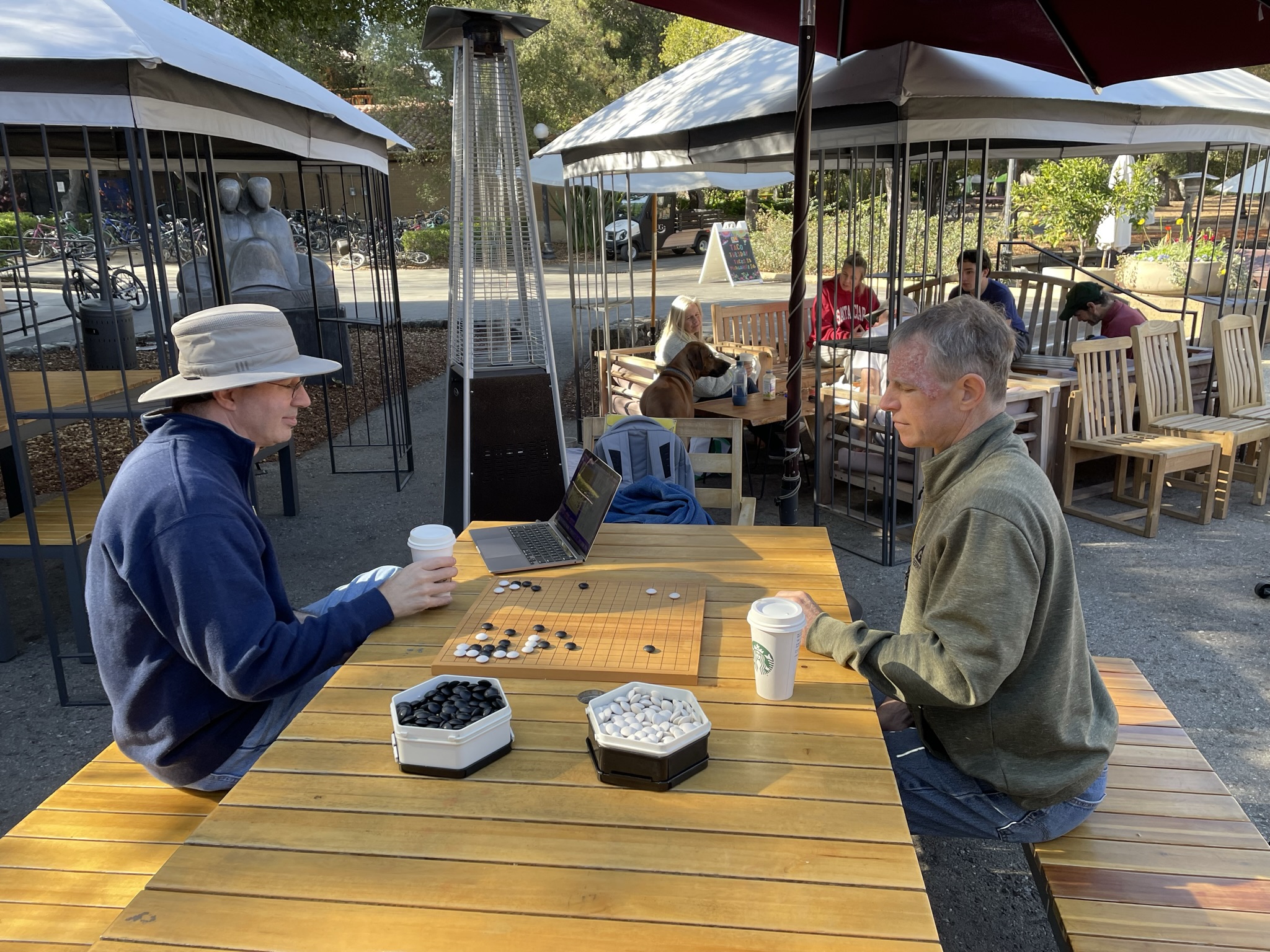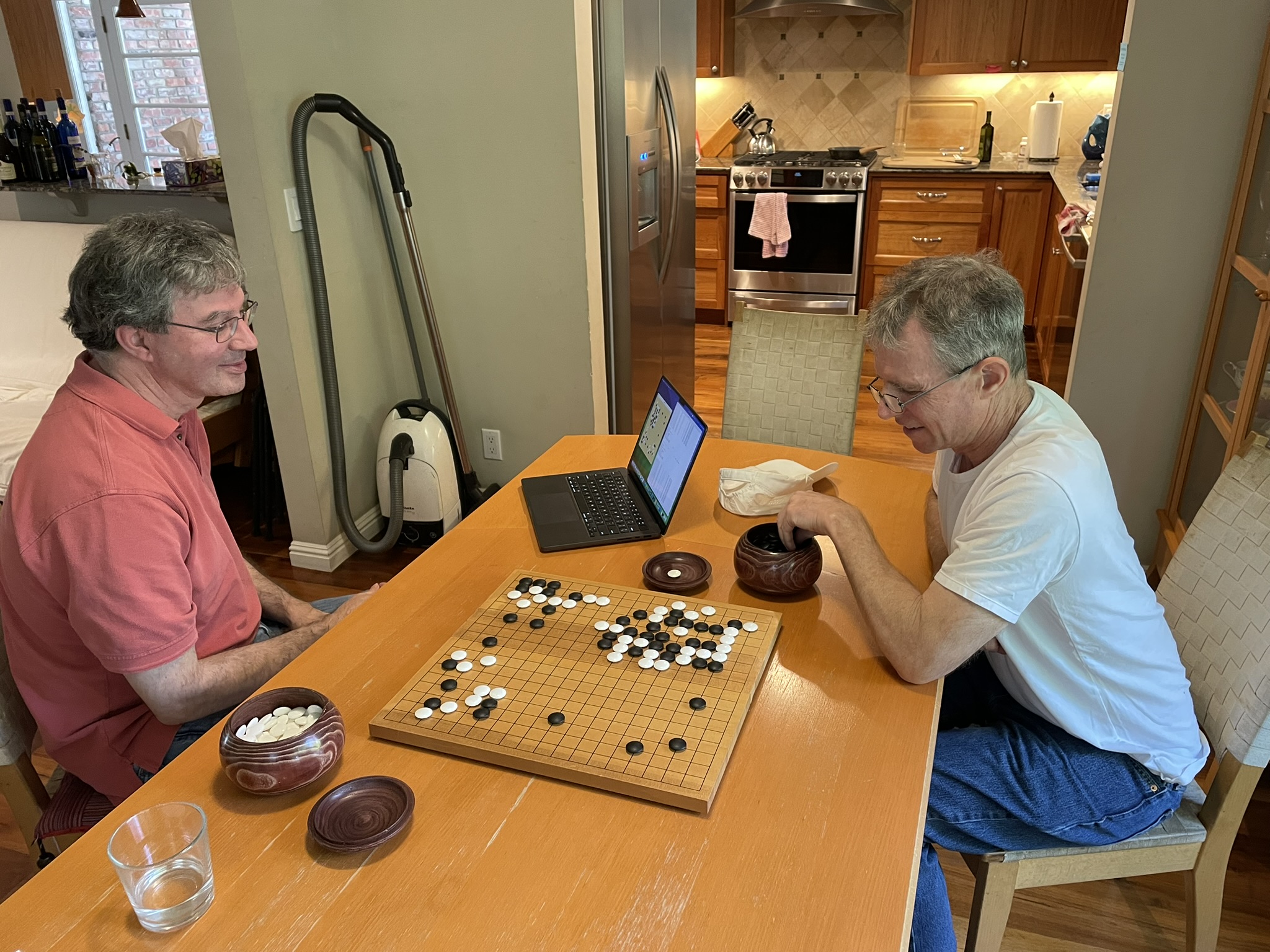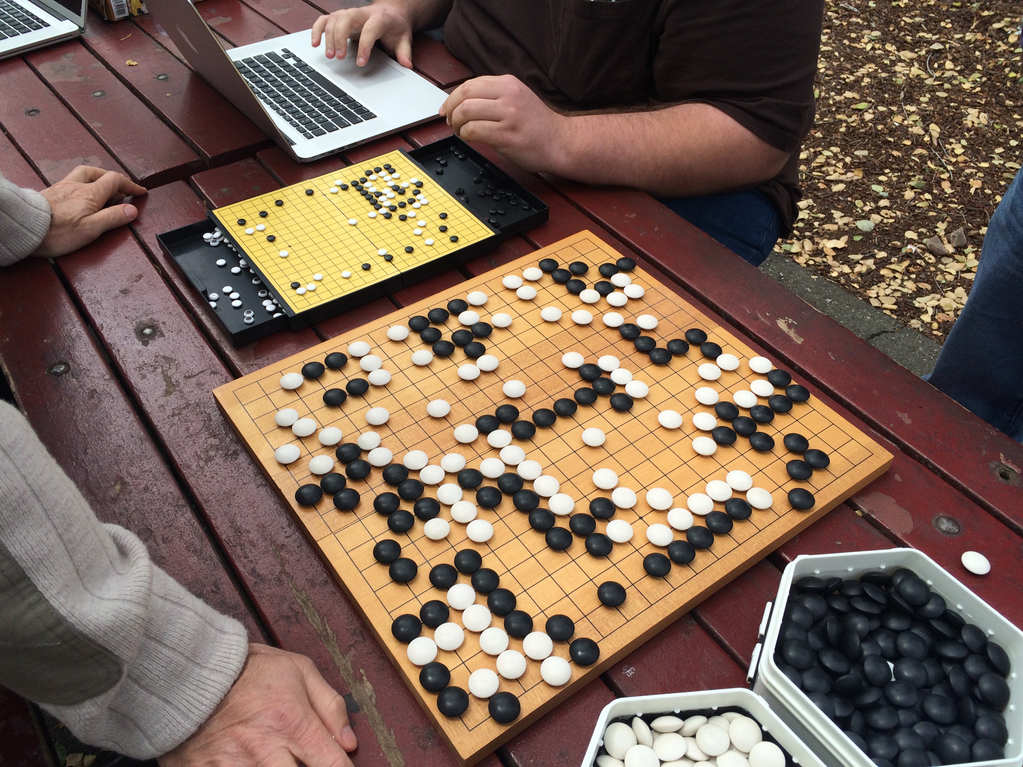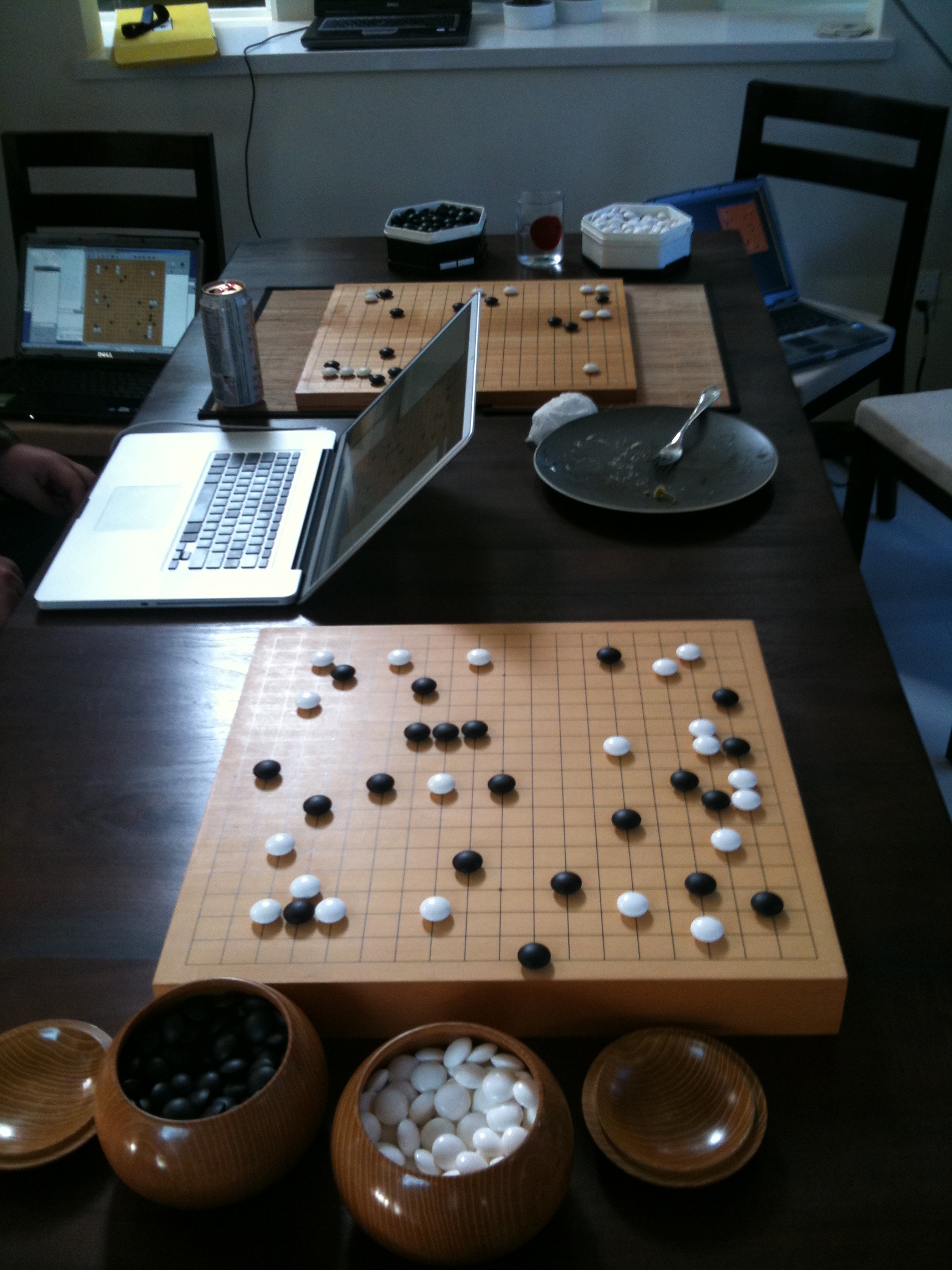 At the same time, Will challenged Scott to a human vs. human game. They've played many times together in the past years, and it's always been clear that Scott is much better. So, in these games, Will always starts with a handicap advantage of a handful of stones.