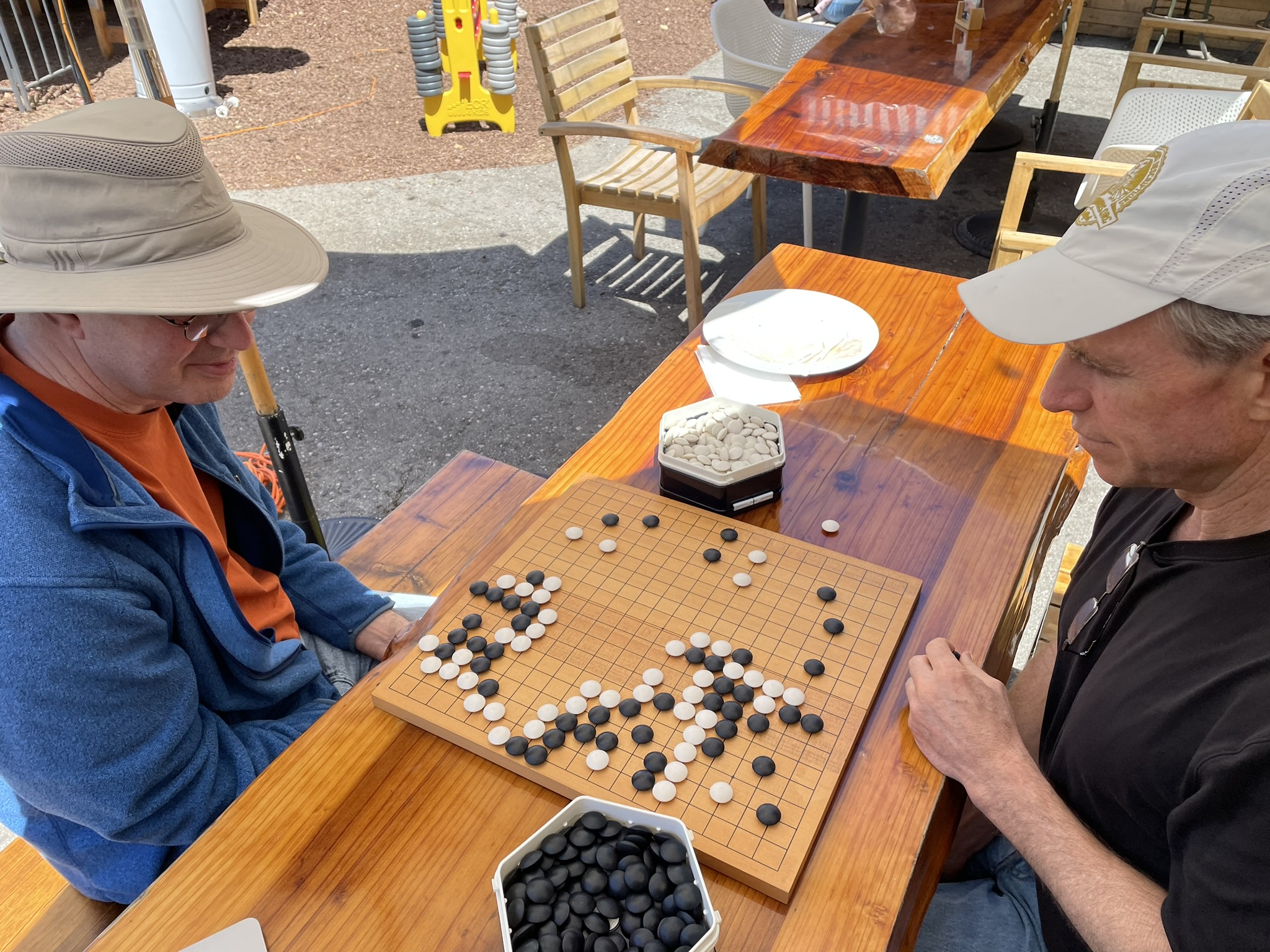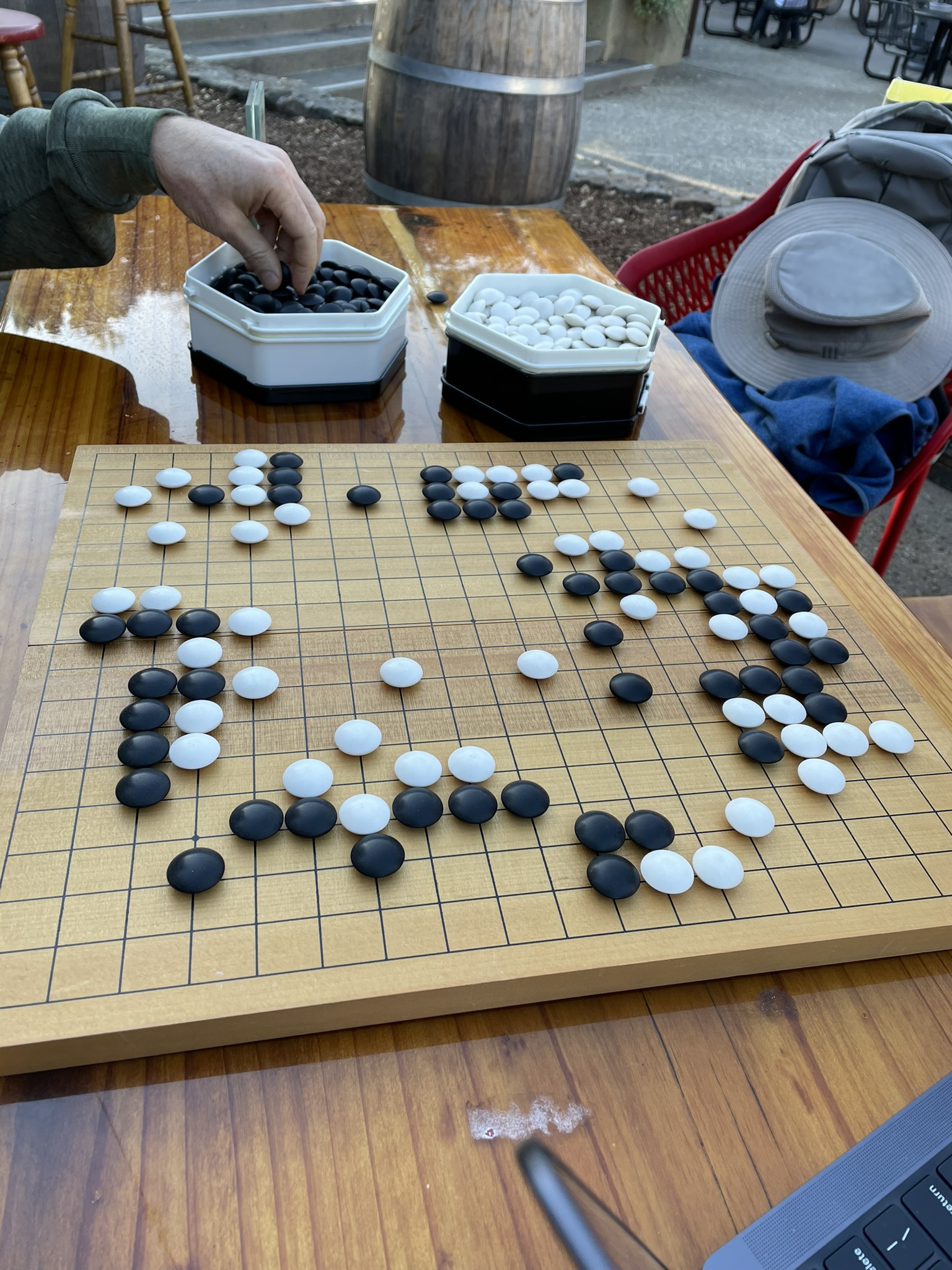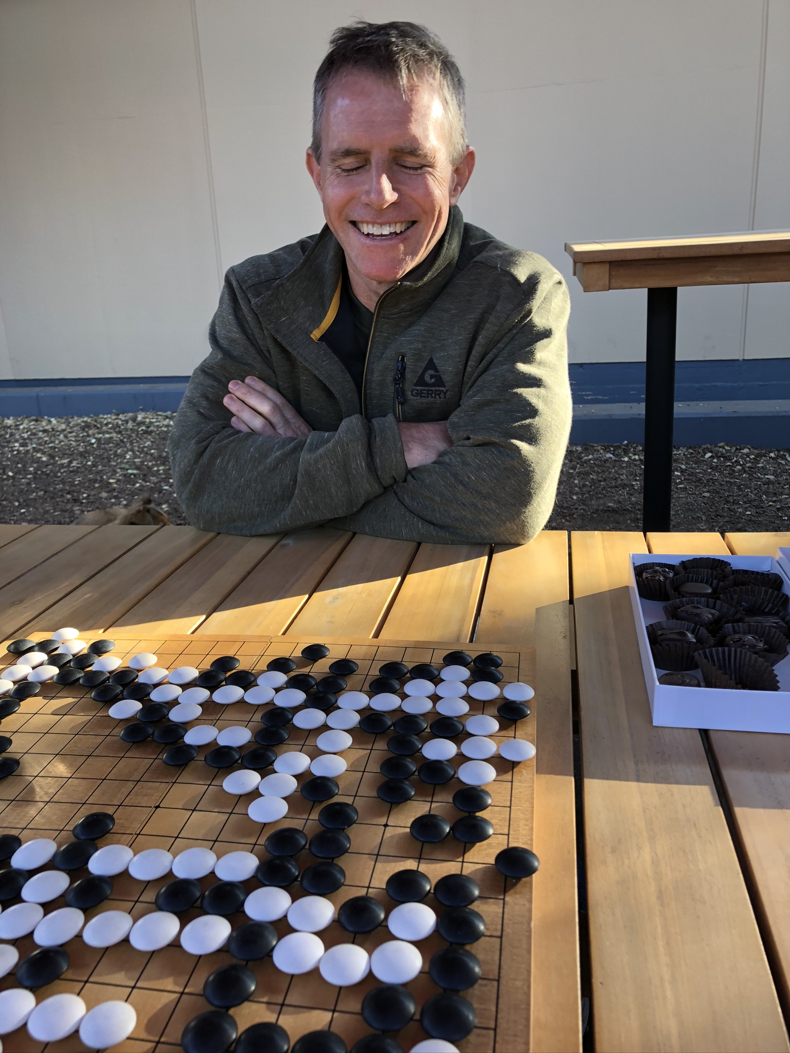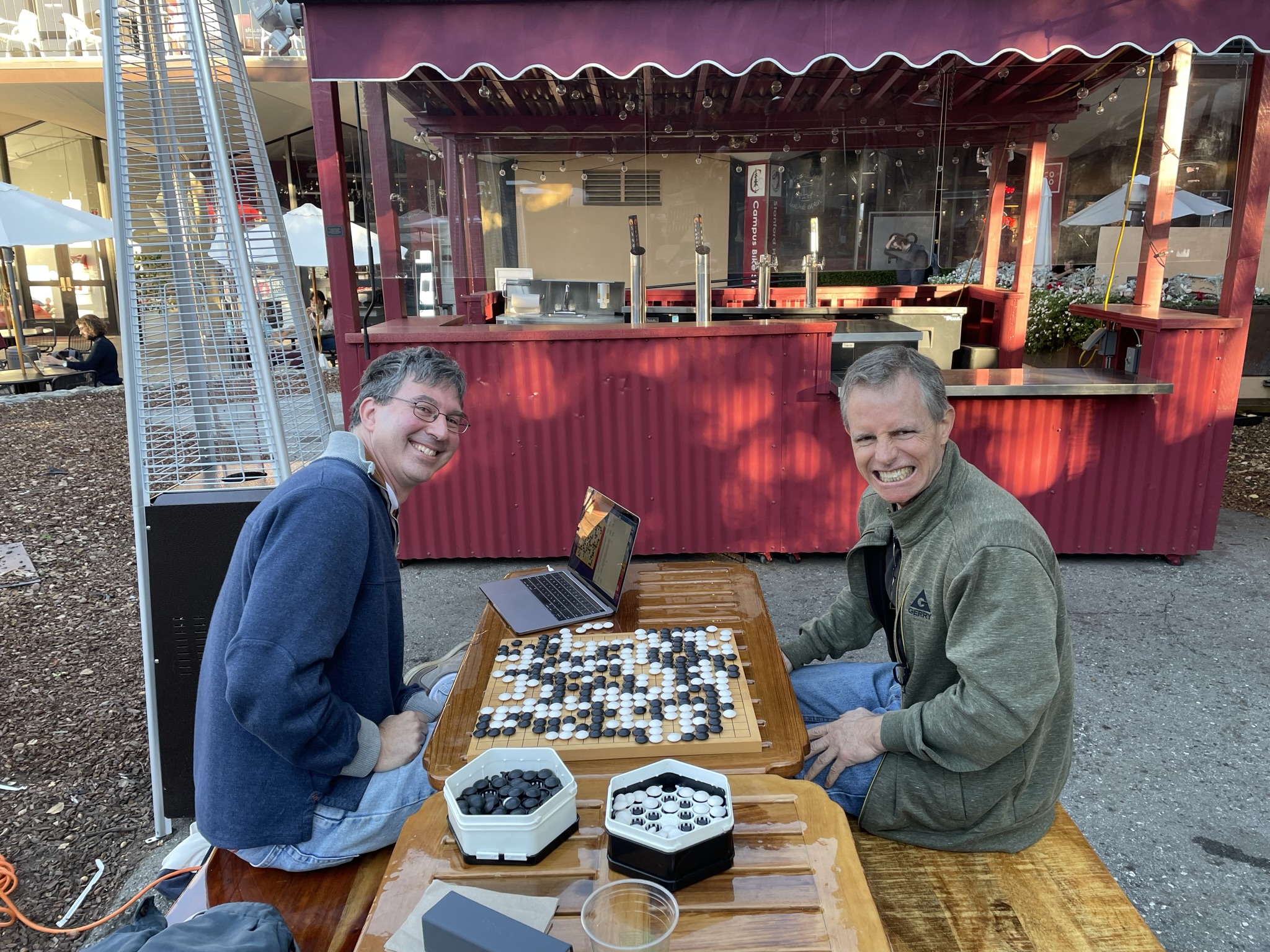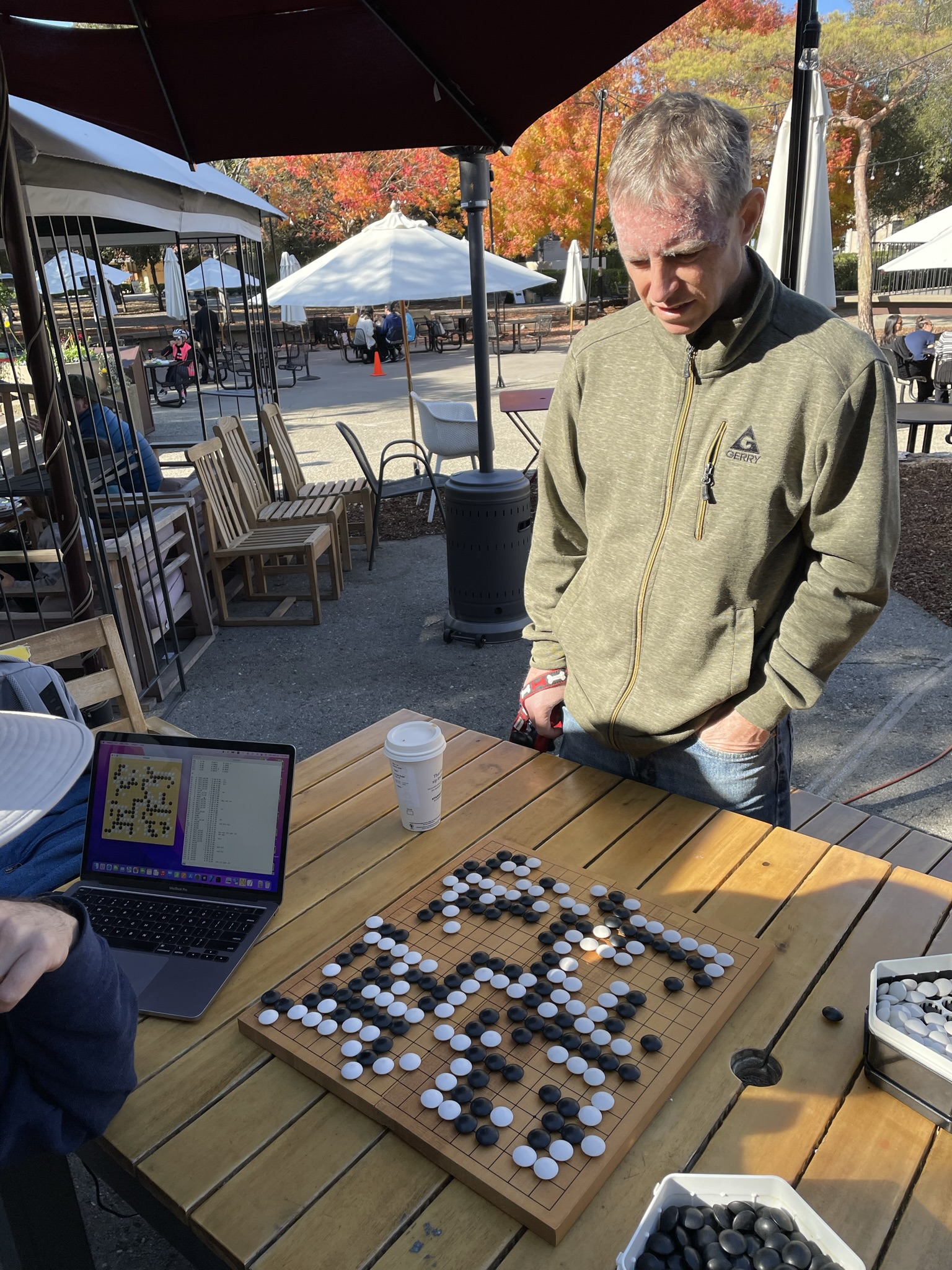 At the same time, Will challenged Scott to a human vs. human game. They've played many times together in the past years, and it's always been clear that Scott is much better. So, in these games, Will always starts with a handicap advantage of a handful of stones.