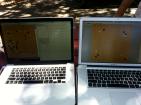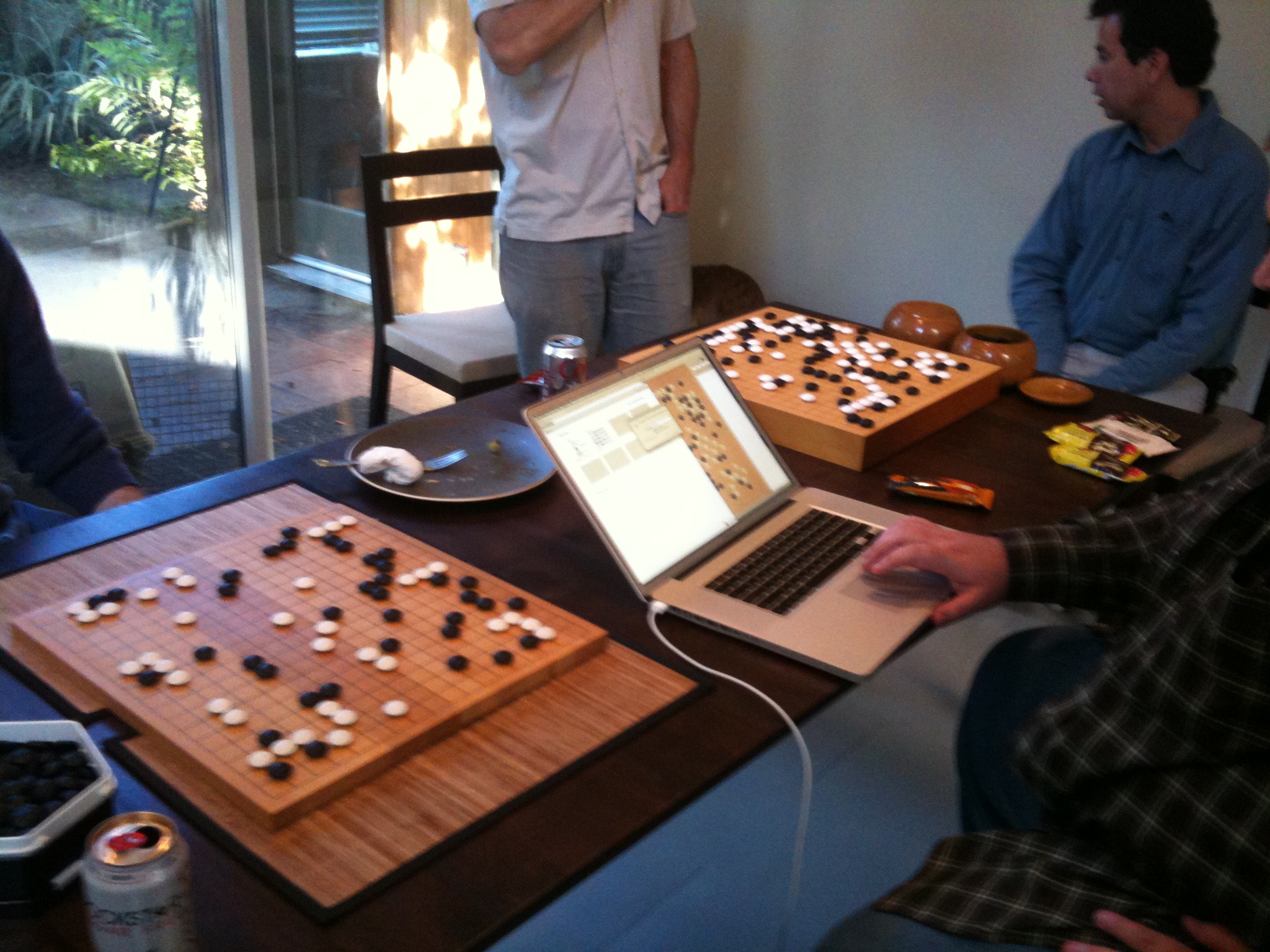 Then, as we were all watching the endgame quickly unfold on Scott's computer screen, Will's brother Ben said "is your battery low?". Indeed, a notification message had shown up on Scott's computer screen. He had plugged the laptop in to an electrical outlet, but it appears that the outlet was not actually providing electricity. Scott quickly attempted to save the game in progress, but in the process of pressing some keys to do so, somehow managed to simply quit the entire application without saving. The laptop still had a tiny bit of power remaining, but now the Go program was no longer running, and the game state was lost forever.