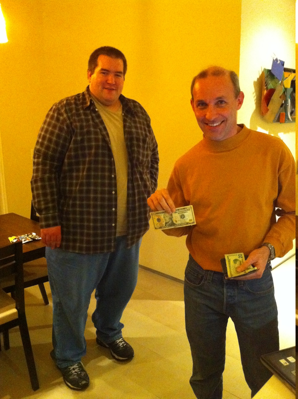 Will won, so Scott paid Will & Don $10 each. The game was surprisingly close, though!
