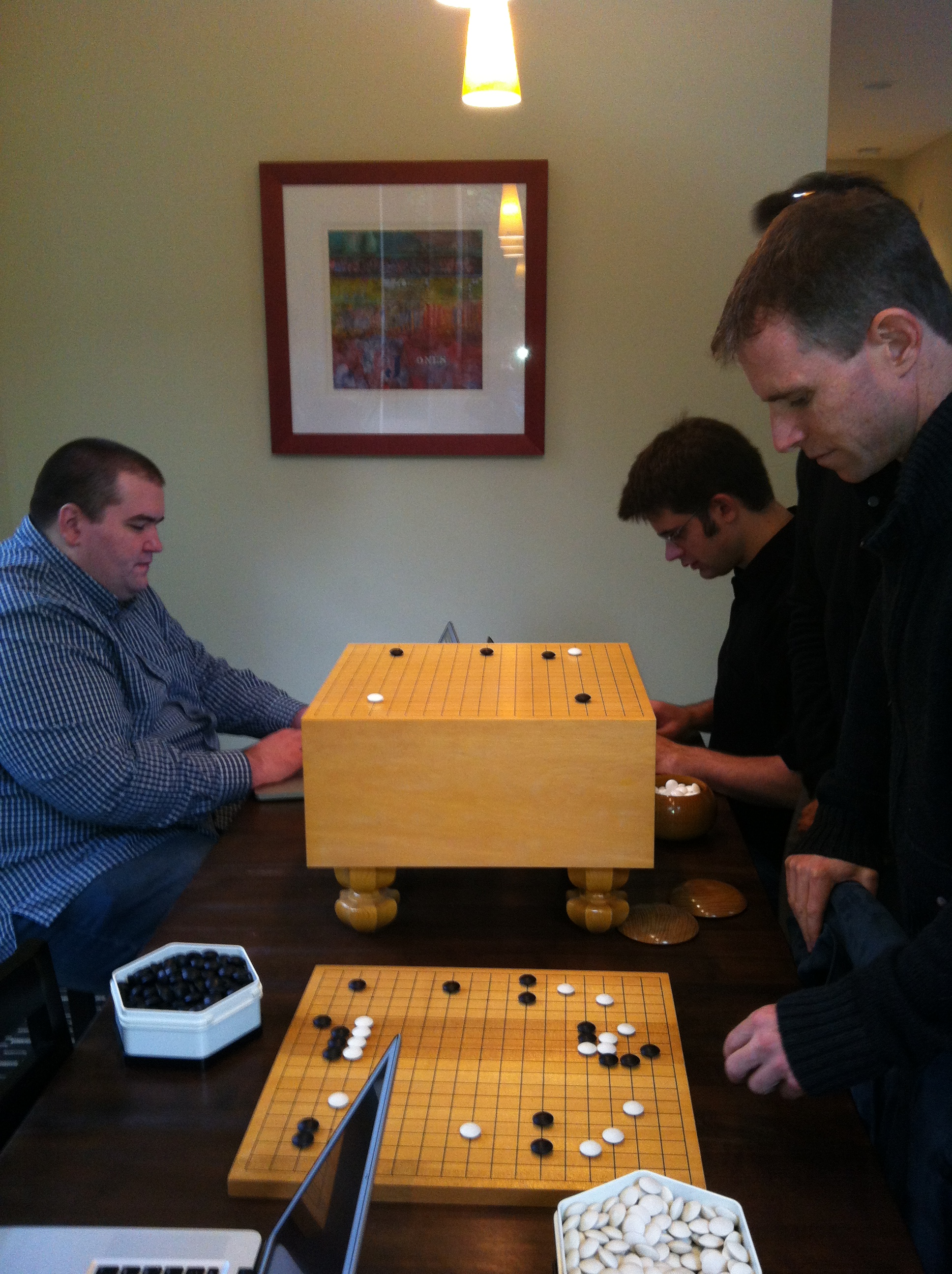But in this game, Will offered to play Scott even, with no handicap. Scott readily agreed, and thought it would be amusing. And of course, he was distracted watching his computer play (and lose) against Ben.