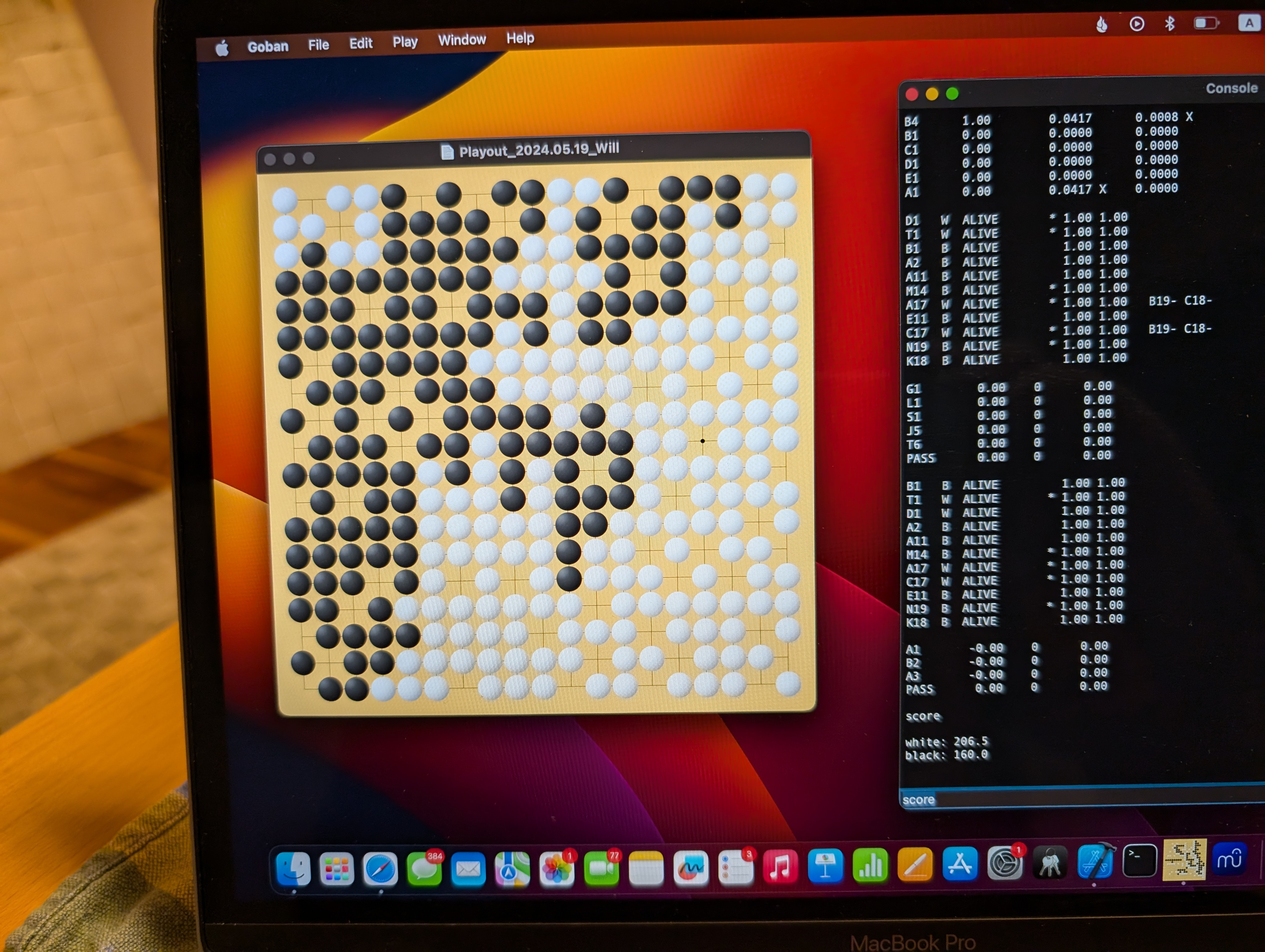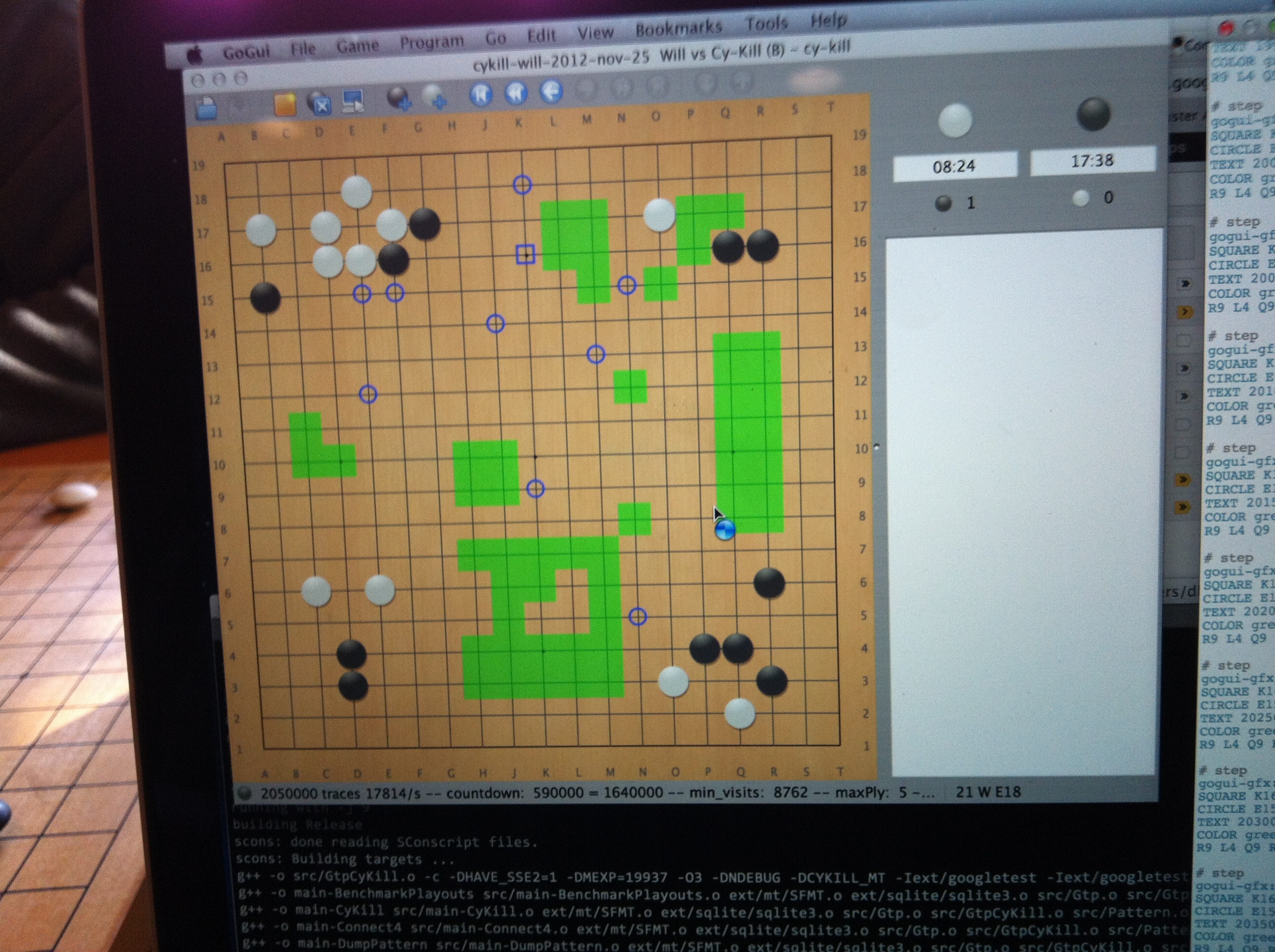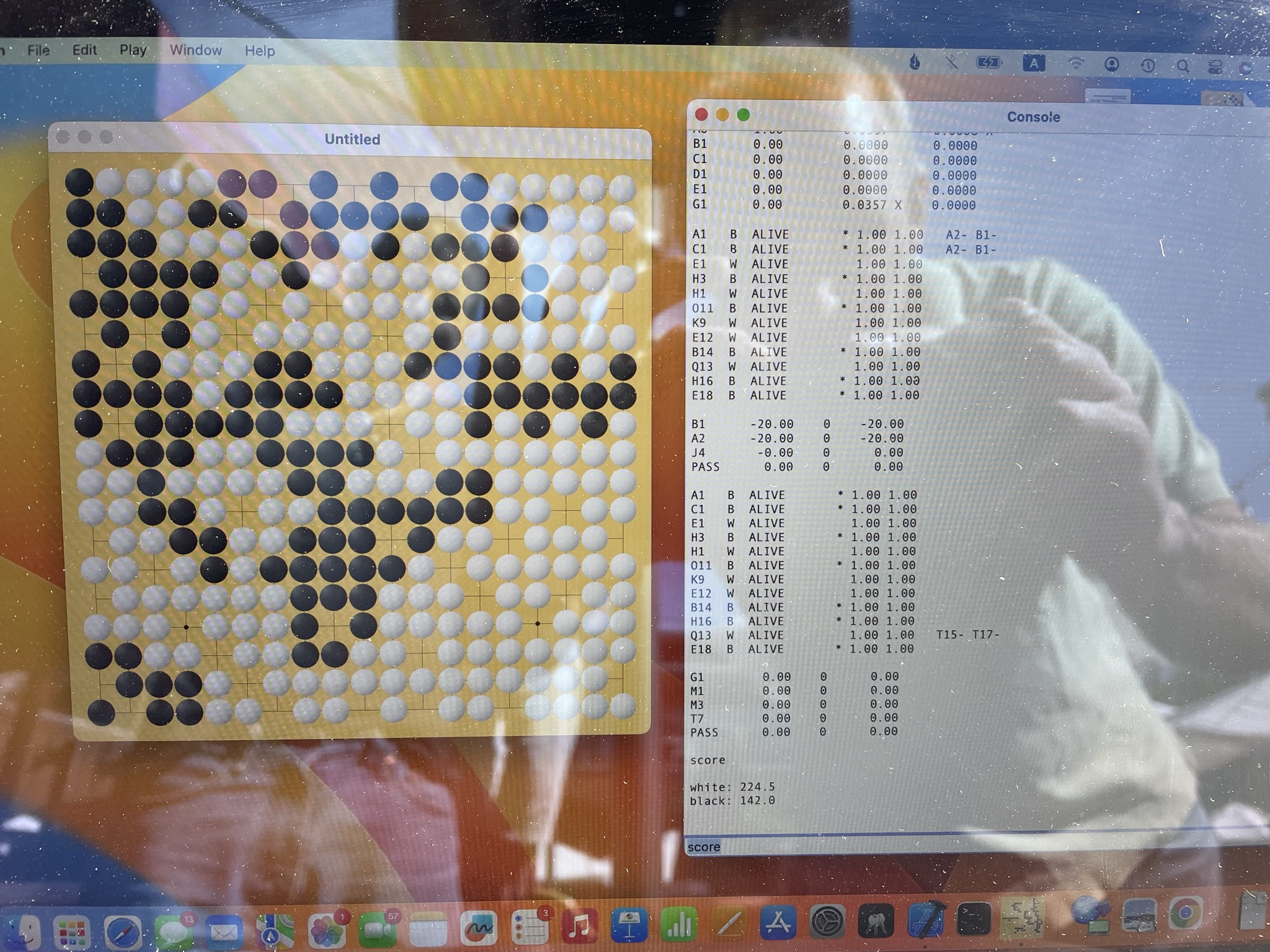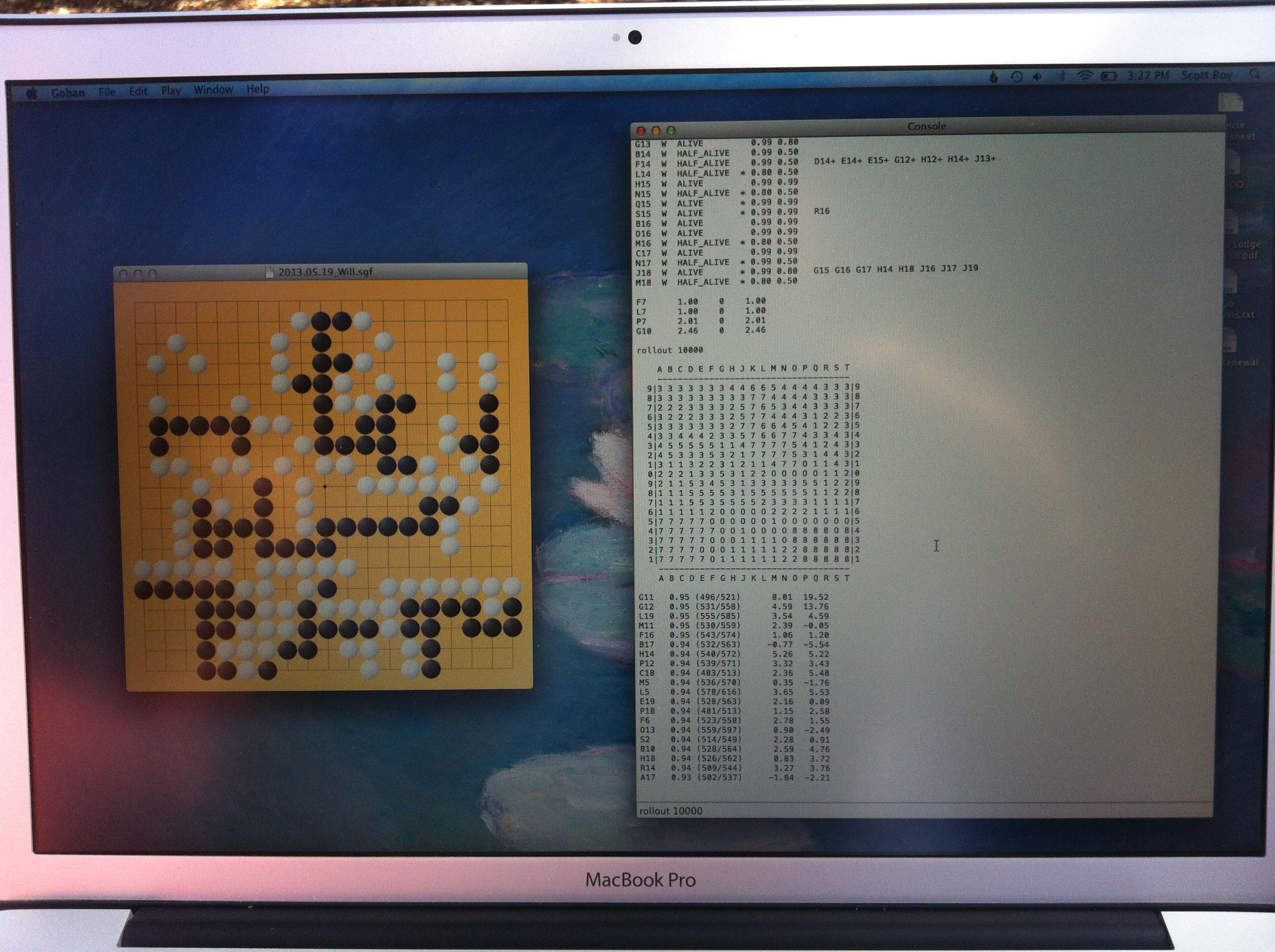Scott was trying to make the program "more cautious" about how it evaluates whether groups are alive or dead. Scott thinks he really should just scrap that whole module, and rewrite it as Monte Carlo search.