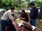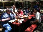 There was an additional one-time side bet of Narinder ($10 Will) vs. Scott's program ($10 Scott) in a separate match. Scott intended to use his latest working version, but the source was not in a working state on the last day. (Scott claims that, with just one more day, he could have gotten it working.) Scott then intended to use the most recent version from six months ago against Narinder, but was unable to find that executable on his laptop. (Apparently, it had been deleted.) The most recent executable he could locate was dated 2004. This program actually played an interesting match against Narinder, who had just learned Go for the first time and spent a total of about 15 hours in the previous two weeks studying the game.