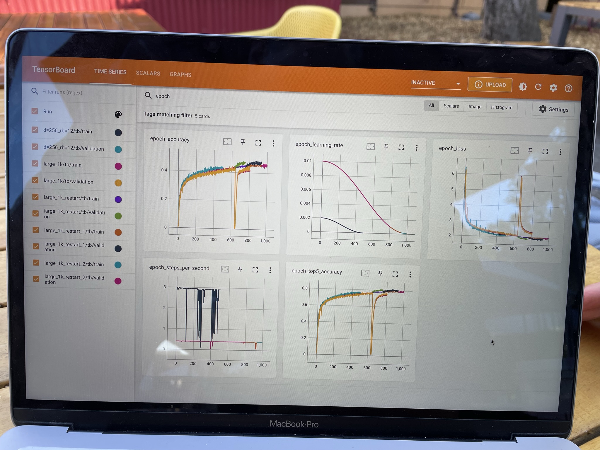 The old program, in the neural net code, used the Cafe framework. That framework is no longer supported on the newest MacBooks. So the old program used older hardware as well. As long as Scott was replacing the neural net code, he also upgraded to a more modern framework, and thus was able to use a much newer (and faster) MacBook. The framework does deep learning, computes derivatives, and implements gradient descent.