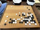 Near the end, there was a tense fight for Will's "dragon" in the center. But then the program started moving in the corner instead, which gave Will two "free" moves in the center. He needed both those moves to make two eyes and live, and thought the program made a mistake to give them to him. But he was happy to take the gift.